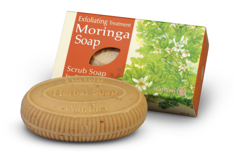 เนื้อสบู่อุดมด้วยส่วนผสมของมะรุม ลูกเดือย น้ำมันรำข้าว โปรตีนถั่วเหลืองและชะเอมเทศ ช่วยลดสาเหตุของการเกิดสิว ฝ้า และรอยหมองคล้ำบนใบหน้า