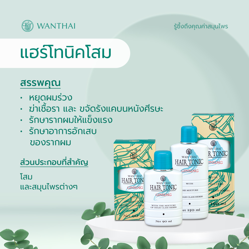 แฮร์โทนิคโสม ชนิดน้ำใช้หยด ช่วยรักษารากผมที่อ่อนแอ กระตุ้นการไหลเวียนโลหิตบนหนังศีรษะ หยุดผมร่วง ลดการอักเสบ และเชื้อราบนหนังศีรษะ