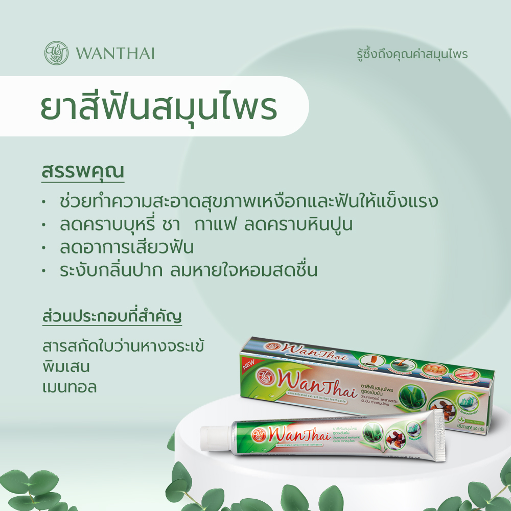 วิธีใช้ : เพื่อสุขภาพเหงือกและฟัน ควรแปรงฟันด้วยยาสีฟันว่านไทยใช้เพียงเล็กน้อย วันละ 2 ครั้ง หรือหลังอาหารทุกมื้อ